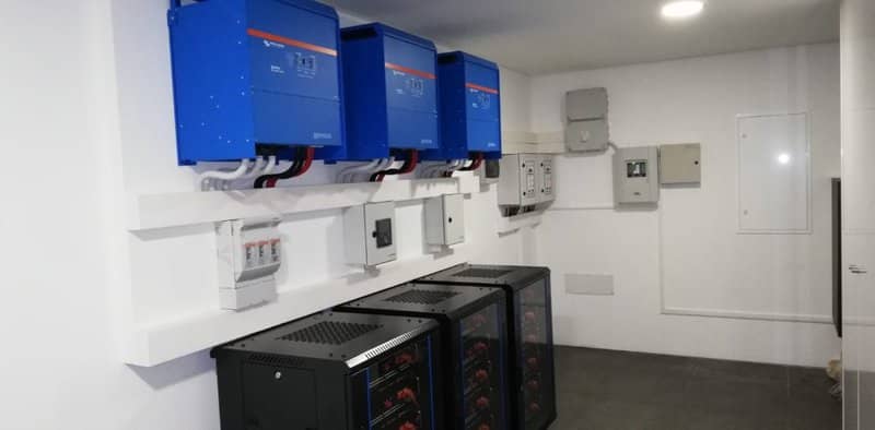 Energy is stored in three racks of 6 x Pylontech US3000B – with a total capacity of 63kWh – and a Pylontech LV-Hub Whole-system communication and control is performed by a Color Control GX. The GX device has many functions, including controlling the solar harvest, battery charging, Solar inverter output; and communicating with a Carlo Gavazzi EM24 Grid Meter. The system is configured to be an Energy Saving System (ESS) designed to optimise self-consumption and battery storage, and minimising the purchase/sale of energy to the grid.