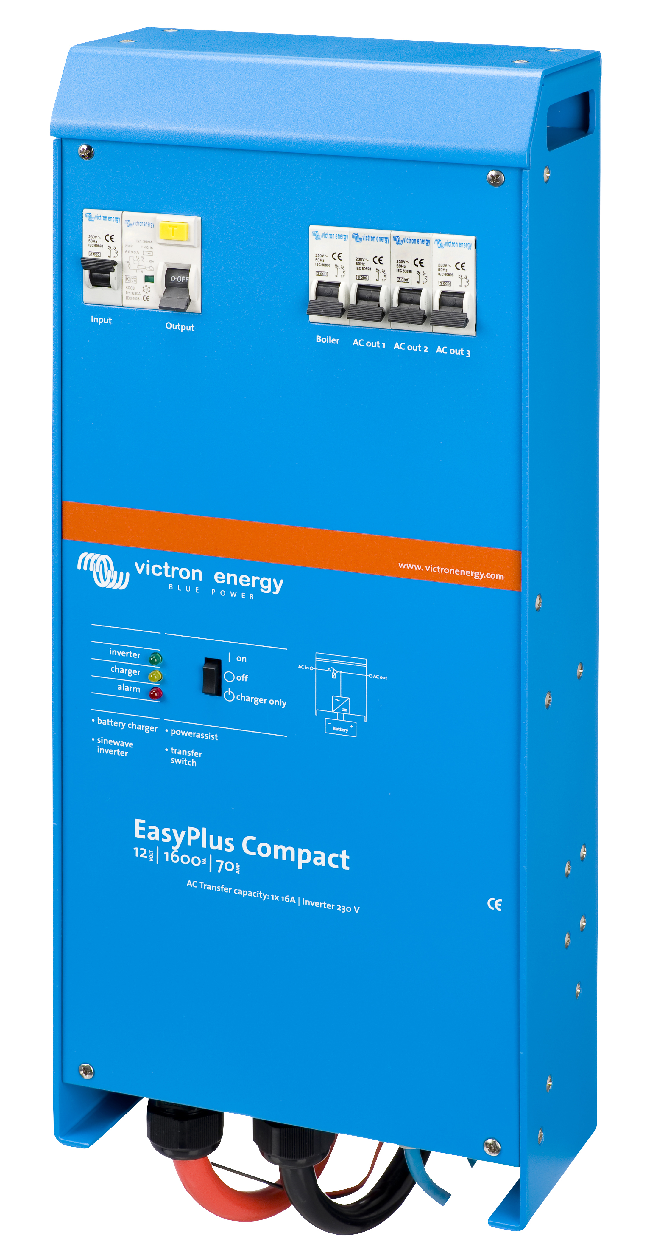 EasyPlus on monitoimintoinen energiajärjestelmä, joka koostuu tehokkaasta siniaaltoinvertteristä, monipuolisesta akkulaturista, nopeasta AC-kytkimestä sekä AC-jaosta, jotka kaikki on yhdistetty keveään ja kompaktiin koteloon. Järjestelmä on suunniteltu niille, jotka haluavat nauttia täysin itsenäisen energiajärjestelmän vapaudesta ja varmuudesta käyttämättä aikaa erilliskomponettien asentamiseen ja yhteenliittämiseen sekä asennukseen liittyviin hankaliin toimenpiteisiin.